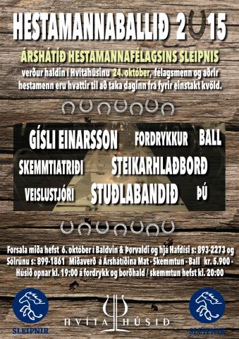 Hestamannafélagið Sleipnir hélt árshátíð laugardaginn 24.okt. í Hvíta Húsinu en alls voru 204 manns í mat og skemmtiatriðum. Mikill vöxtur hefur verið í félagsstarfinu sem endurspeglast í miklu starfi, sameiginlegum hestaferðum félagsins, námsskeiðahaldi í nýbyggðri reiðhöll og íþrótta- og gæðingamótum á Brávöllum. Á hátíðinni var tækifærið notað og verðlaun veitt fyrir helstu afrek félagsmanna og hesta þeirra á liðnu ári. Sú nýbreytni var tekin upp á þessari árshátíð að verðlauna félaga ársins. Guðlaug Bára Sigurjónsdóttir varð fyrst til að vera valin félagi ársins og óskum við henni til lukku með tilnefninguna.