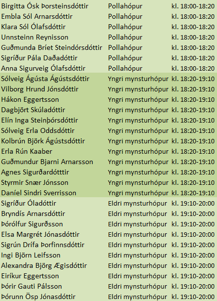 Hér koma upplýsingar um æfingatíma hestafjörshópanna í reiðhöll Sleipnis alla miðvikudaga fram að sýningu. Einnig er hægt að skoða tímasetningarnar beint á dagatali reiðhallarinnar með því að smella hér.