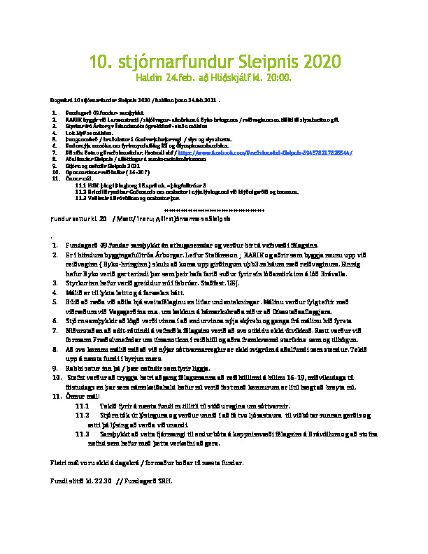 10.Stjórnarfundur Sleipnis 2020