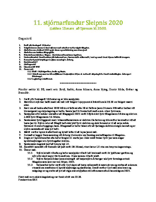11.Stjórnarfundur Sleipnis 2020